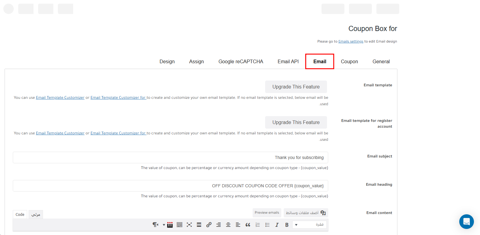 نقوم في هذا القسم بإعداد الكوبون الذي يحصل عليه المستخدم بعد الاشتراك.
