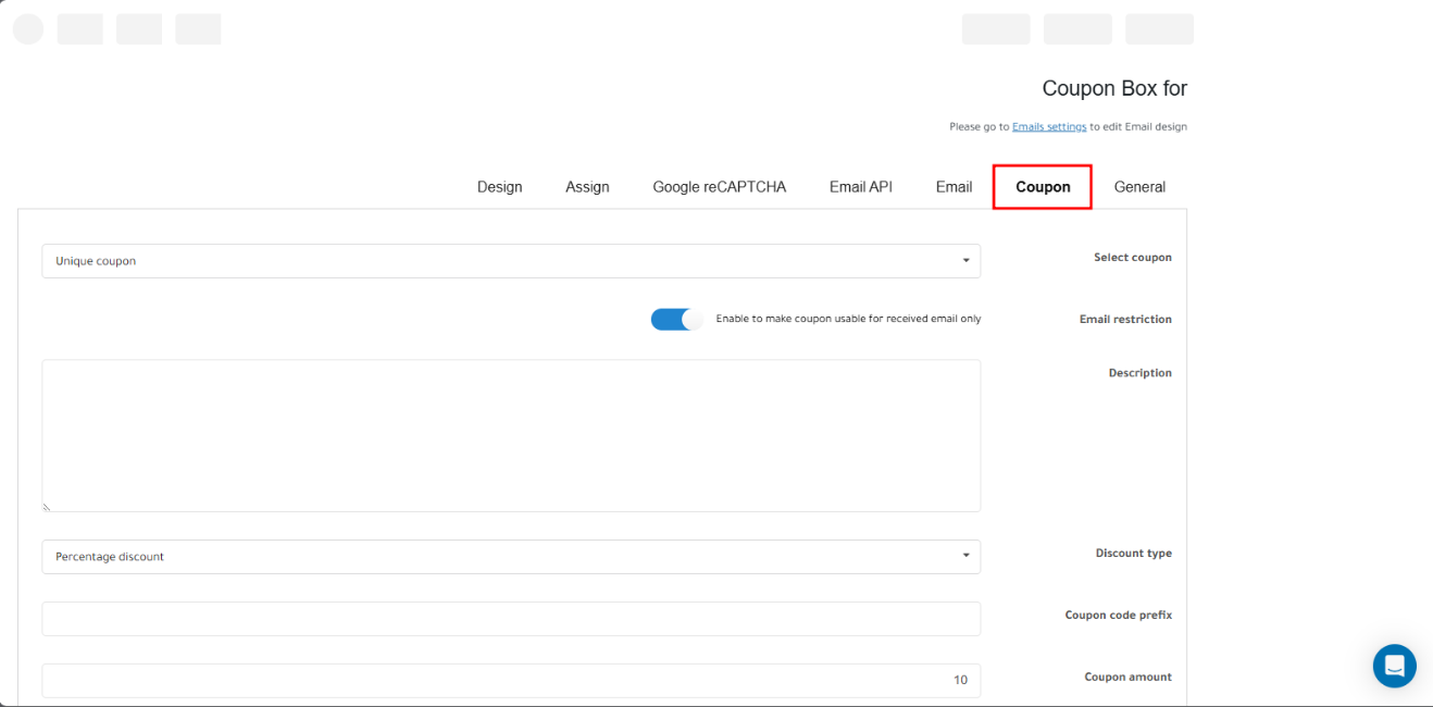 إعدادات تصميم صندوق الكوبون (Coupon Box Settings):