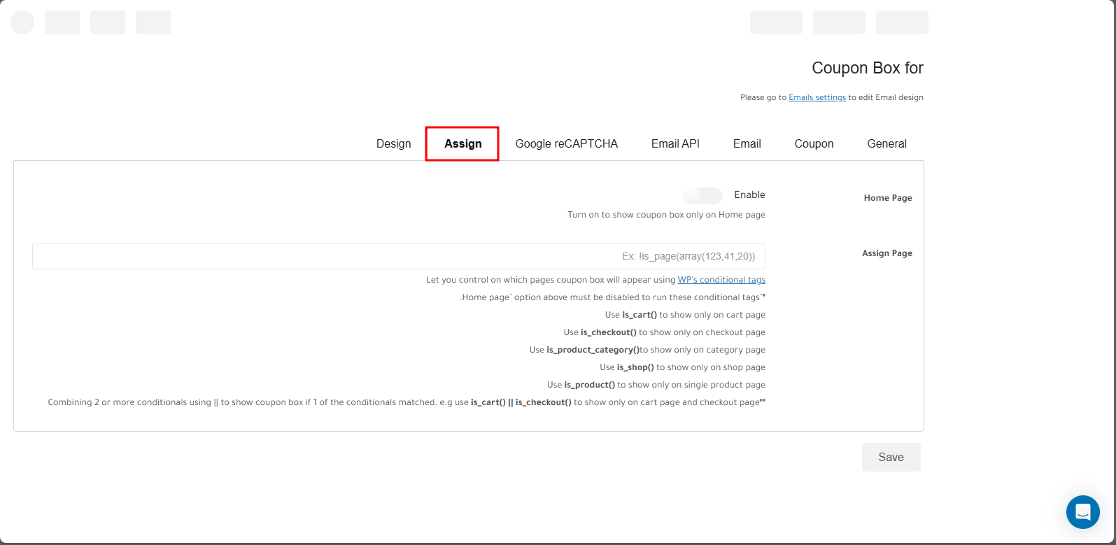 عرض نافذة الكوبون في الصفحة الرئيسية فقط. - Assign Page