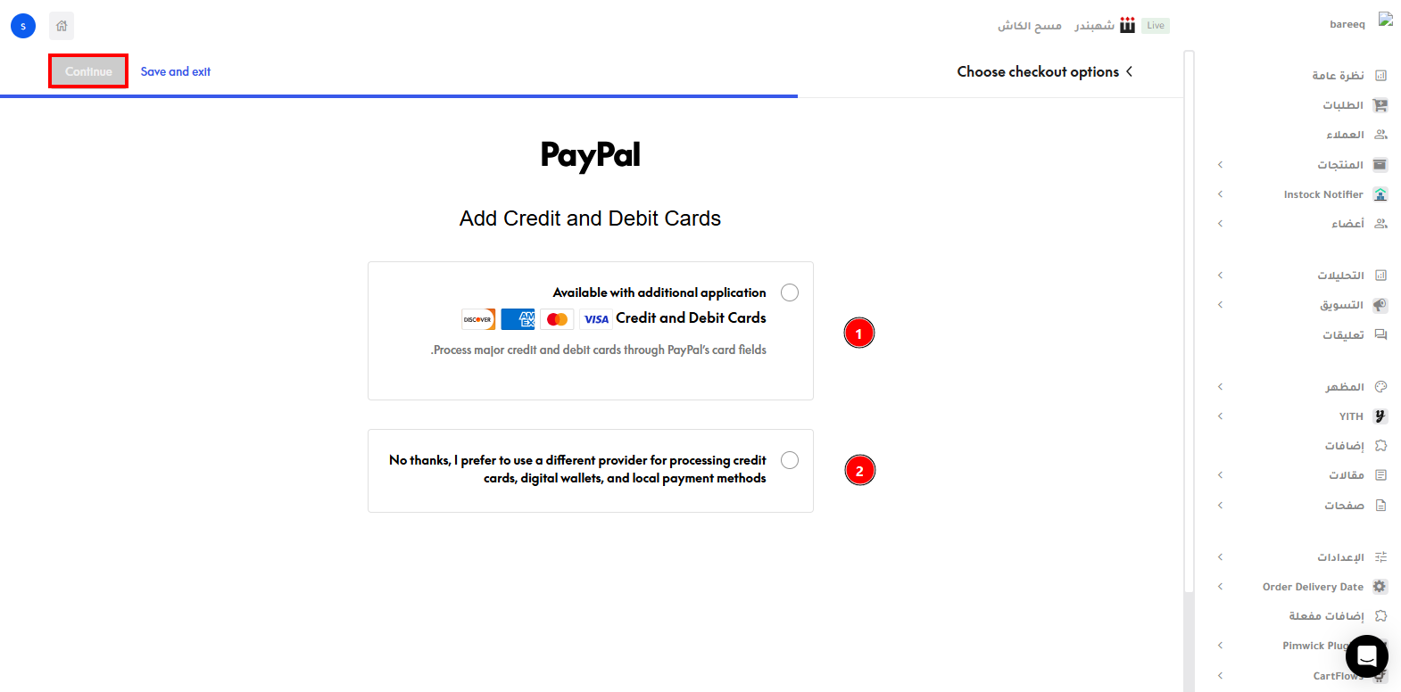 - والخيار الثاني إذا تفضل تستخدم مزود ثاني لمعالجة البطاقات أو المحافظ الرقمية.