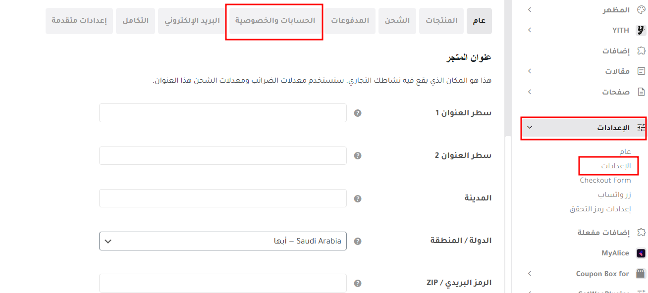 • ستجد هذه الخيارات داخل قسم الحسابات والخصوصية في لوحة التحكم الخاصة بمتجرك على منصة شهبندر.