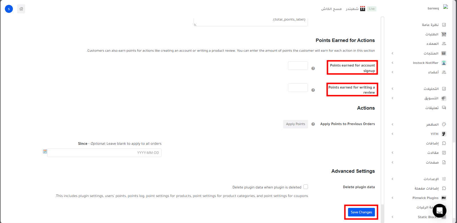 - Apply Points to Previous Orders تطبيق النقاط على الطلبات السابقة.