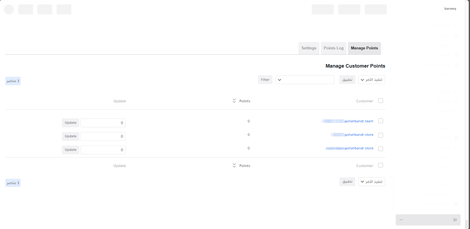 من هذا التبويب يمكنك تعديل رصيد النقاط لكل عميل يدويًا: