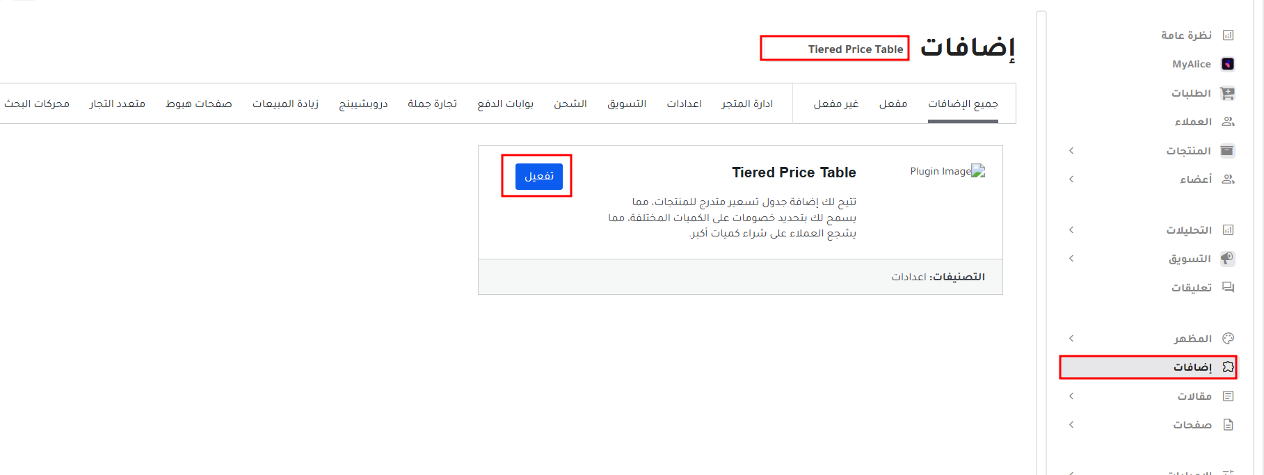 القسم الأول: تفعيل إضافة Tiered Pricing Table