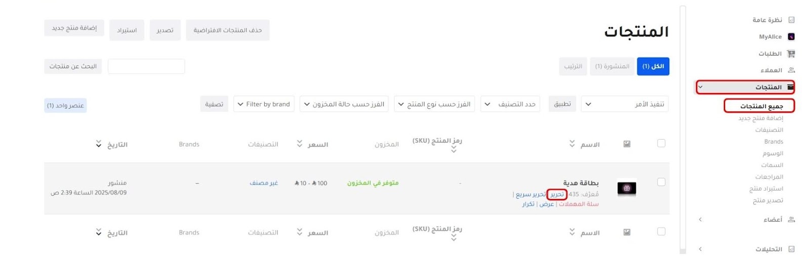 بعد إنشاء منتج بطاقة الهدايا بنجاح، انتقل إلى قسم المنتجات من القائمة الجانبية، ثم اضغط على المنتج الخاص ببطاقة الهدايا لتحريره.