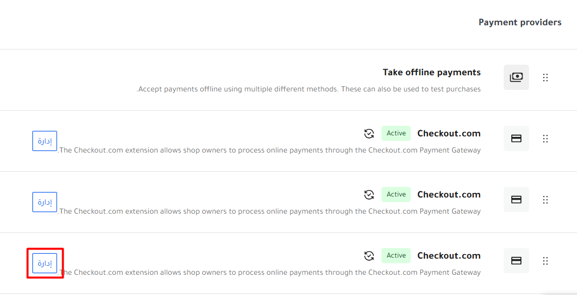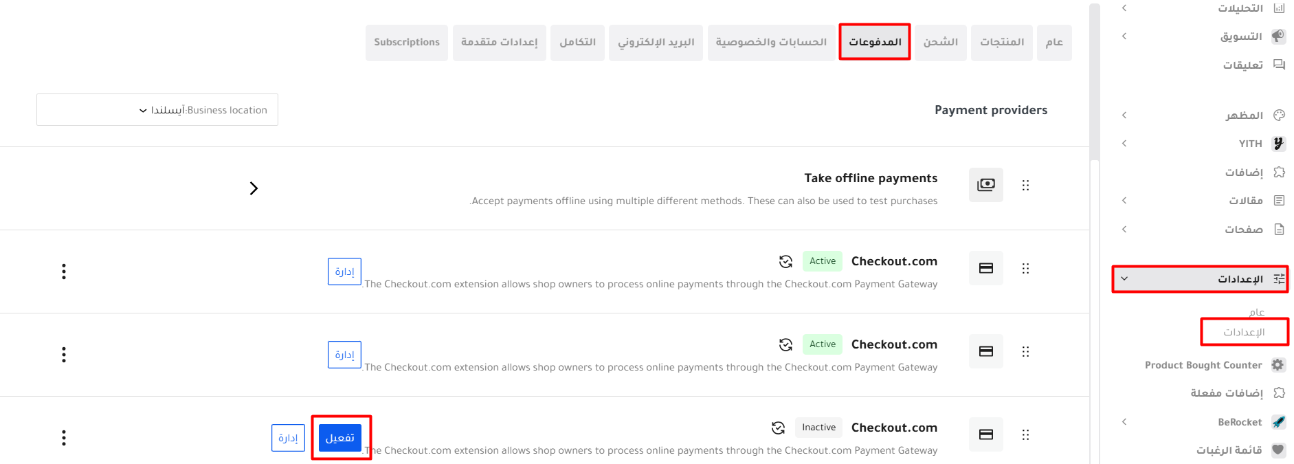 - اختر Checkout.com Payment Gateway من قائمة طرق الدفع المتاحة ثم قم بالضغط على تفعيل