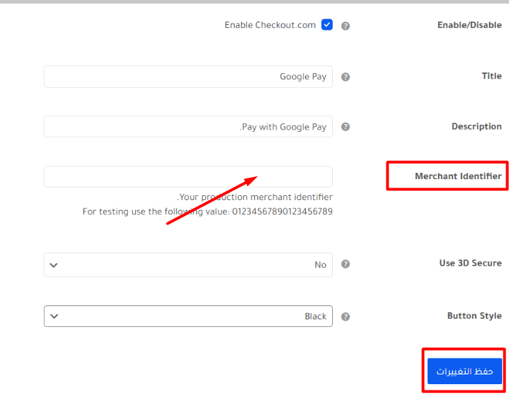 المعرّف الخاص بالتاجر لدى Checkout.com، ويُستخدم لتمييز متجرك داخل نظام الدفع.