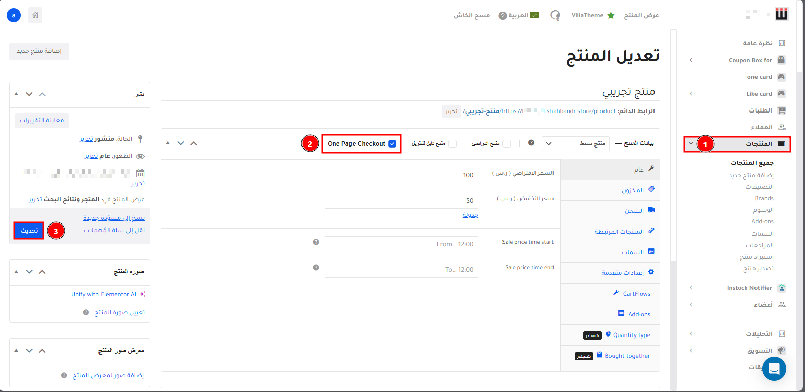 4- عند فتح صفحة المنتج، ستجد خيار تفعيل Checkout in Product Page