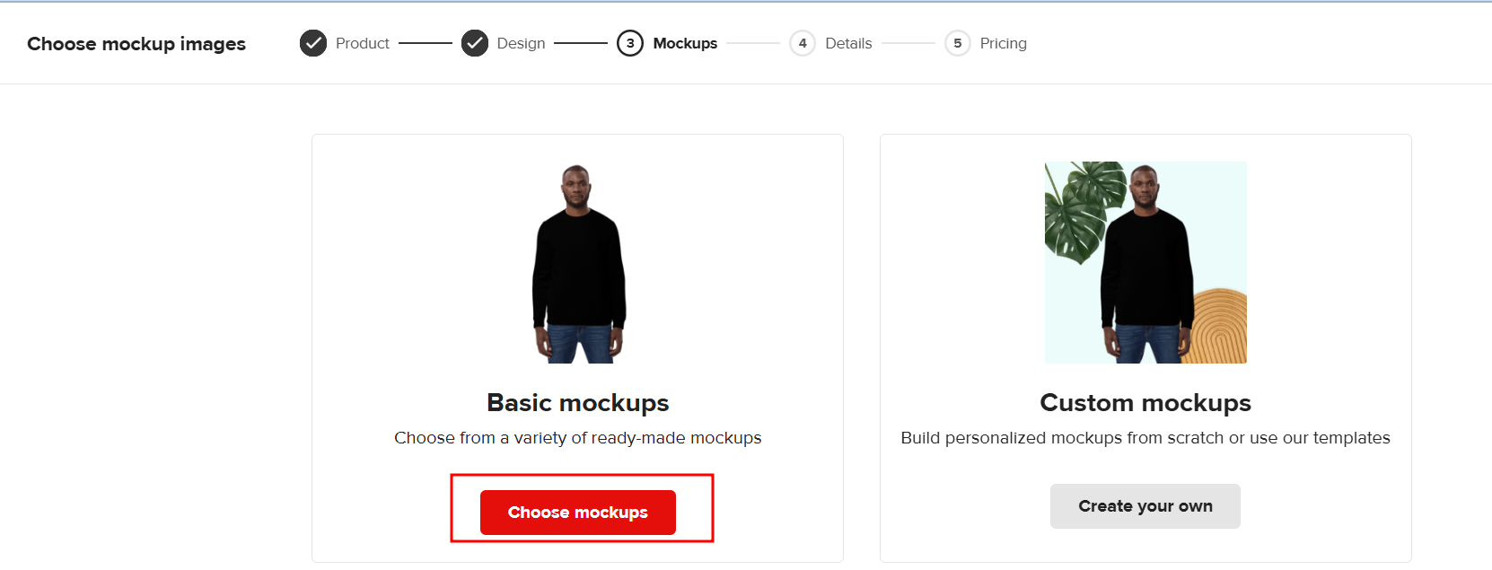 - اختيار صور العرض Mockups التي ستظهر في المتجر.