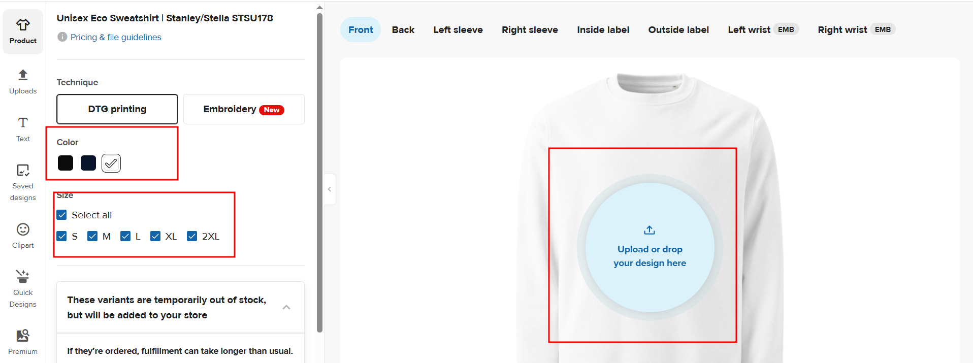 - جهّز ملفات التصميم بجودة عالية (PNG أو SVG حسب نوع المنتج).