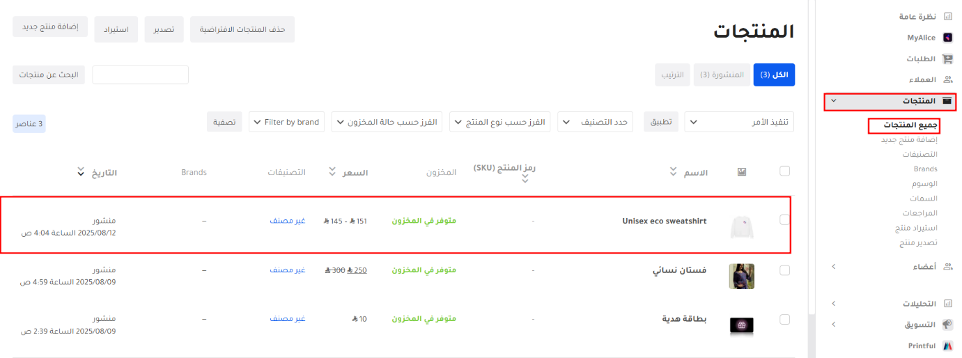 - افتح قسم المنتجات للتأكد من ظهور المنتج الجديد.